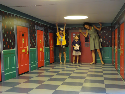 I think the hem dips a tiny bit in the back but I don't think anyone but me would notice. So, not to bad for my first dress. That's my girls and me (in the dress) at the Magic House's Alice in Wonderland room.